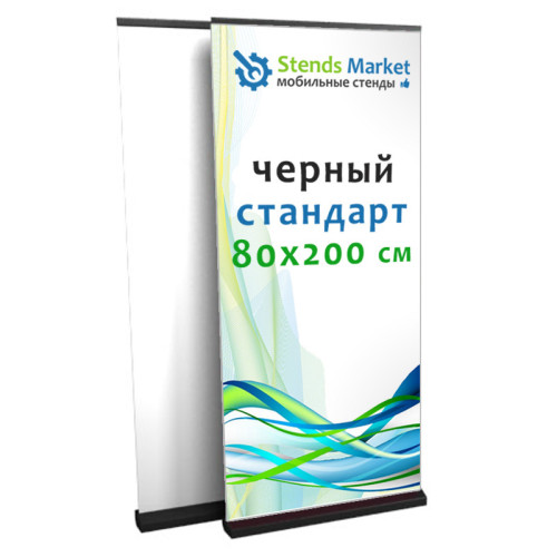Конструкция и материалы, применяемые в этих ролл-апах, полностью аналогичны стендам серии Стандарт - самым популярным среди всего многообразия стендов roll-up. В настоящее время роллапы Стандарт черного цвета доступны в размерах 80х200 см и 100х200 см.