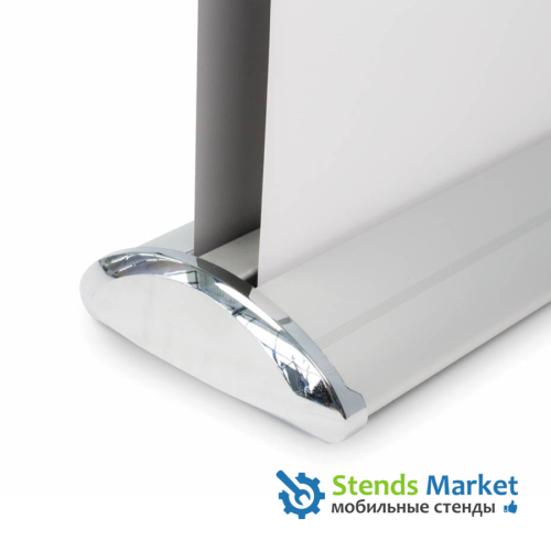 Двусторонний ролл-ап шириной 150 см. Двусторонний ролл-ап позволяет разместить 2 независимых полотна, обращенных в противоположные стороны. Хорошее решение для охвата разнонаправленных потоков с минимальными затратами.