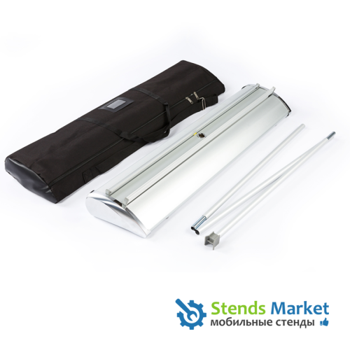 В этом стенде применен клик-профиль для верхнего крепления баннера и уплотненная сумка для транспортировки.